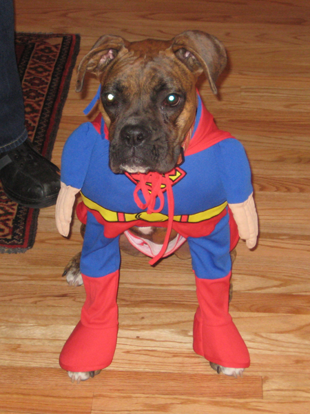 For Halloween Chris and Melanie dressed up Melanie's boxer, Andi, as