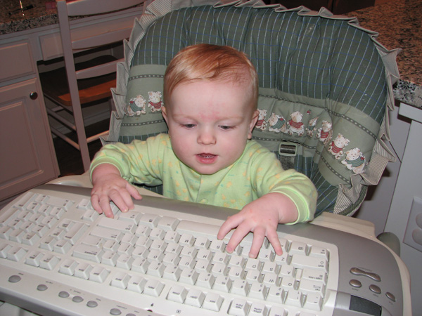 Beckett discovers a PC keyboard... Ooooo, my own keyboard...