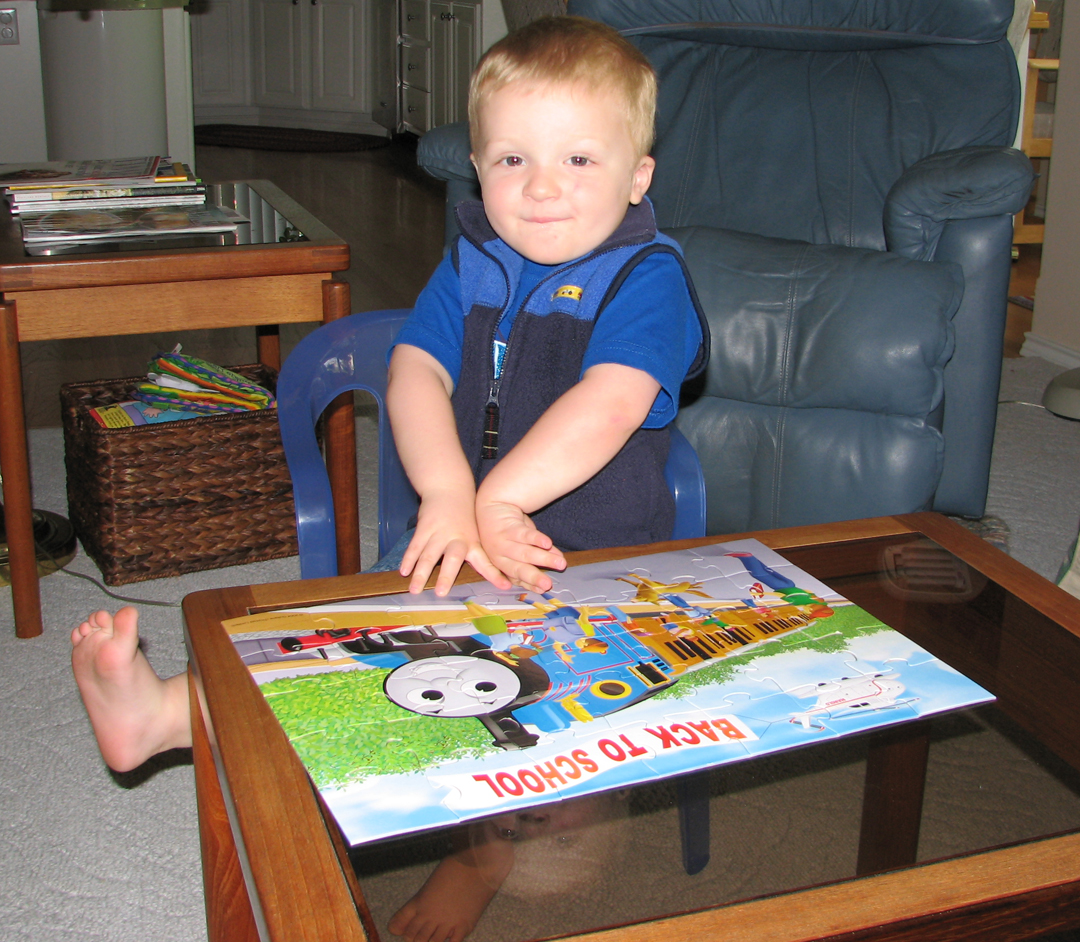 July 11. Connor does the big puzzle on his own. He likes being puzzle champ. I'm finished!