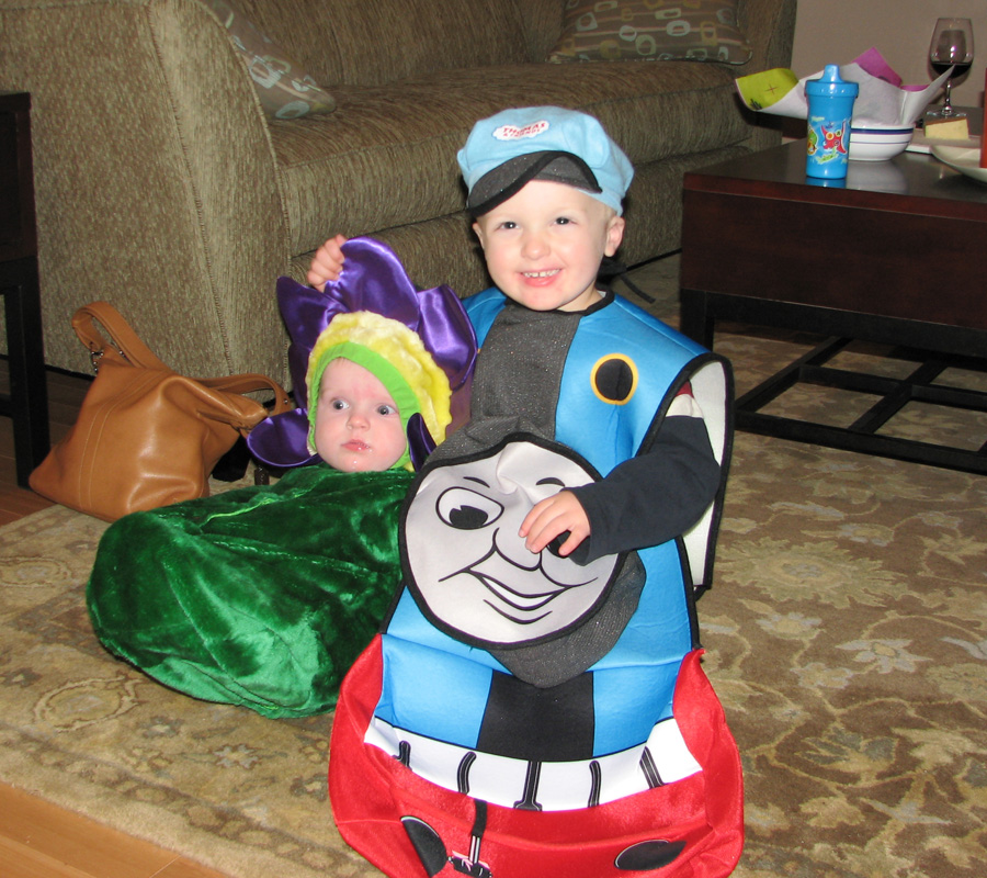 Beckett the Flower and Connor as Thomas the Tank Engine
