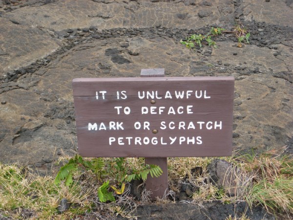 While in the Hawaii Volcanoes NP we took the petroglyph hike to view some ancient Hawaiian petroglyphs.