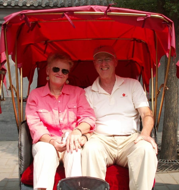 Dick and Diana on a tri-shaw ride in Beijing, China, May 2005