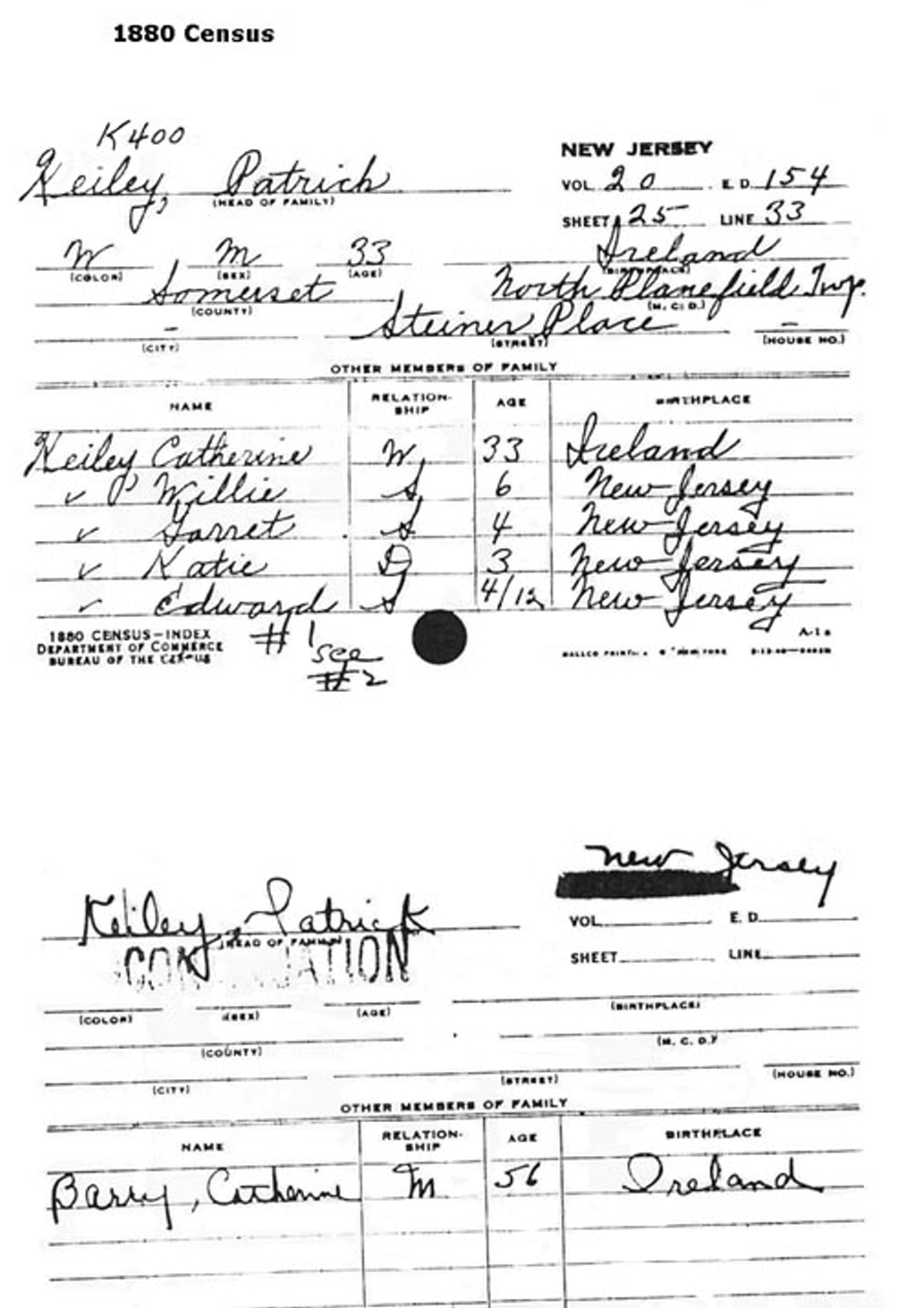1880 Census form showing my paternal grandmother, Katie, as age 3.