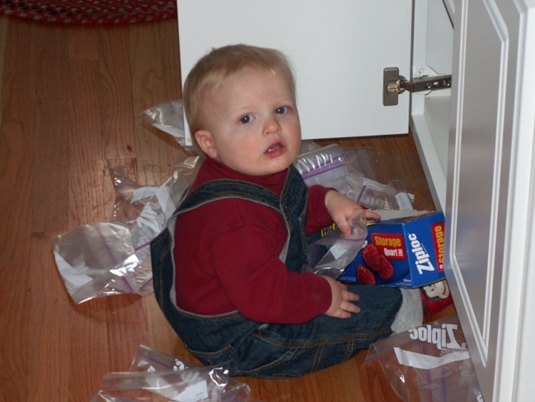 Connor exploring the world of plastic food bags.