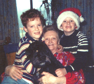 Grandma Granton with Chris, Corey, and Buttons ca. 1980
