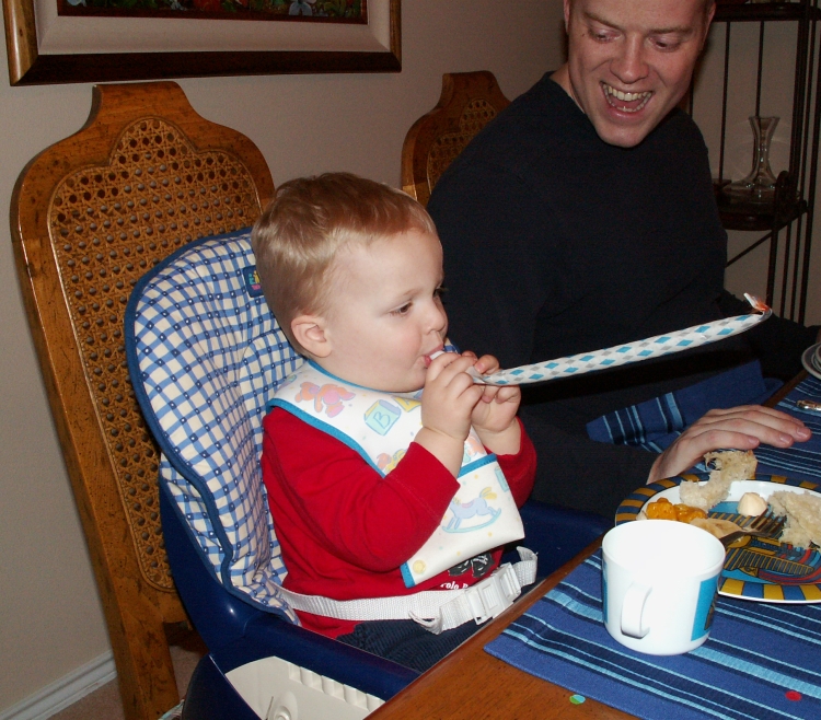 Chris laughing at Connor as he celebrates New Years day and Grandma's birthday.